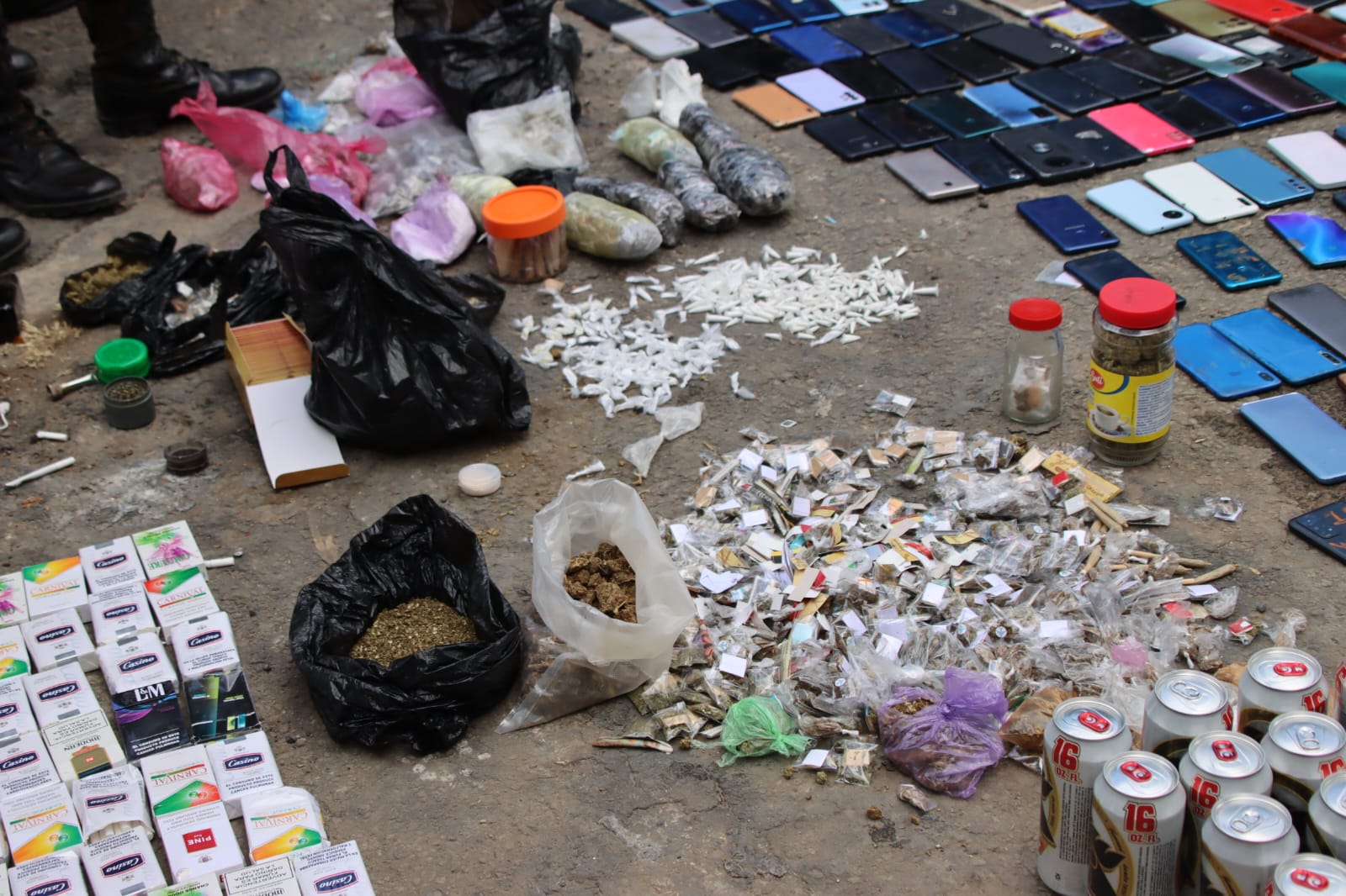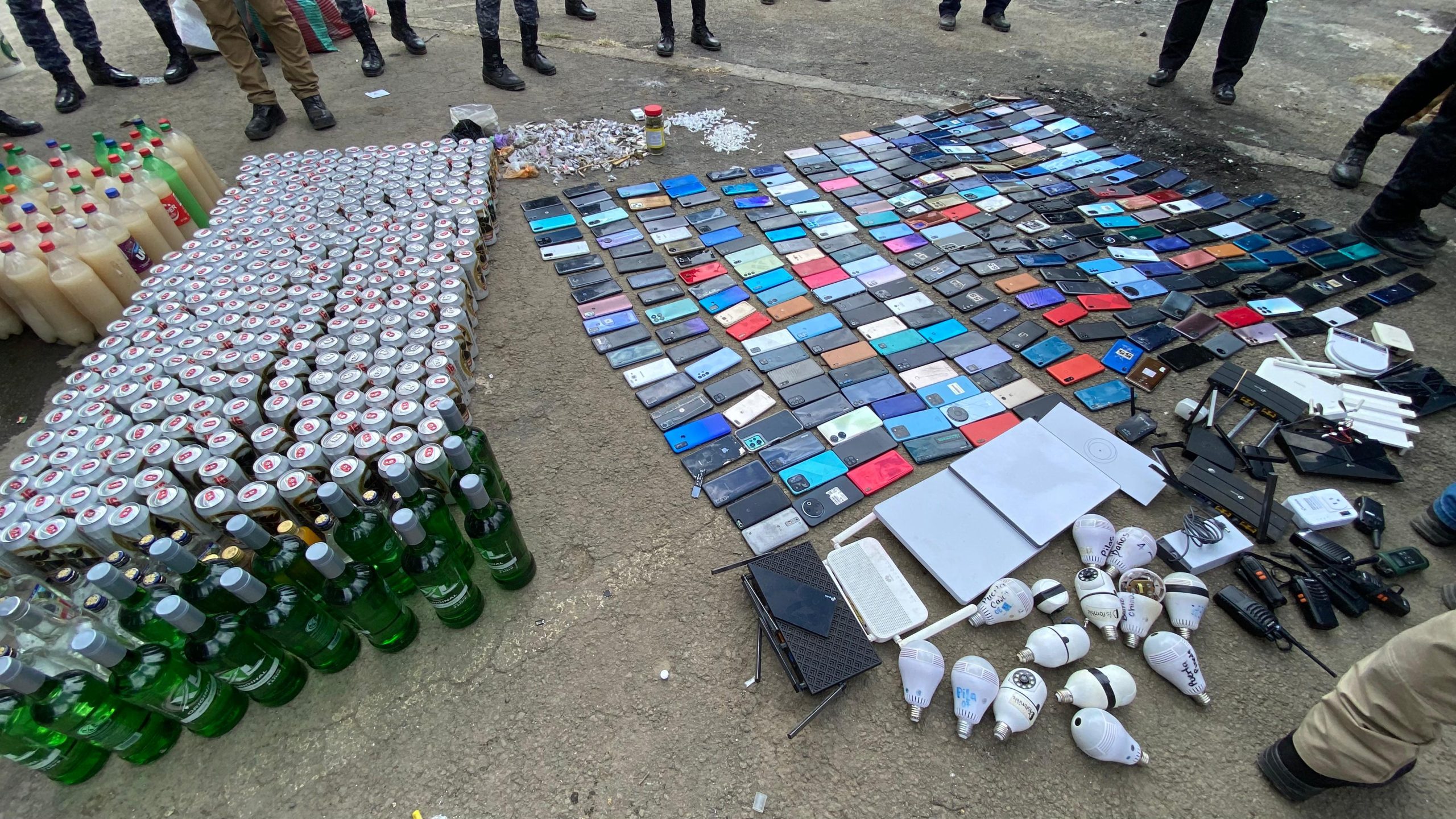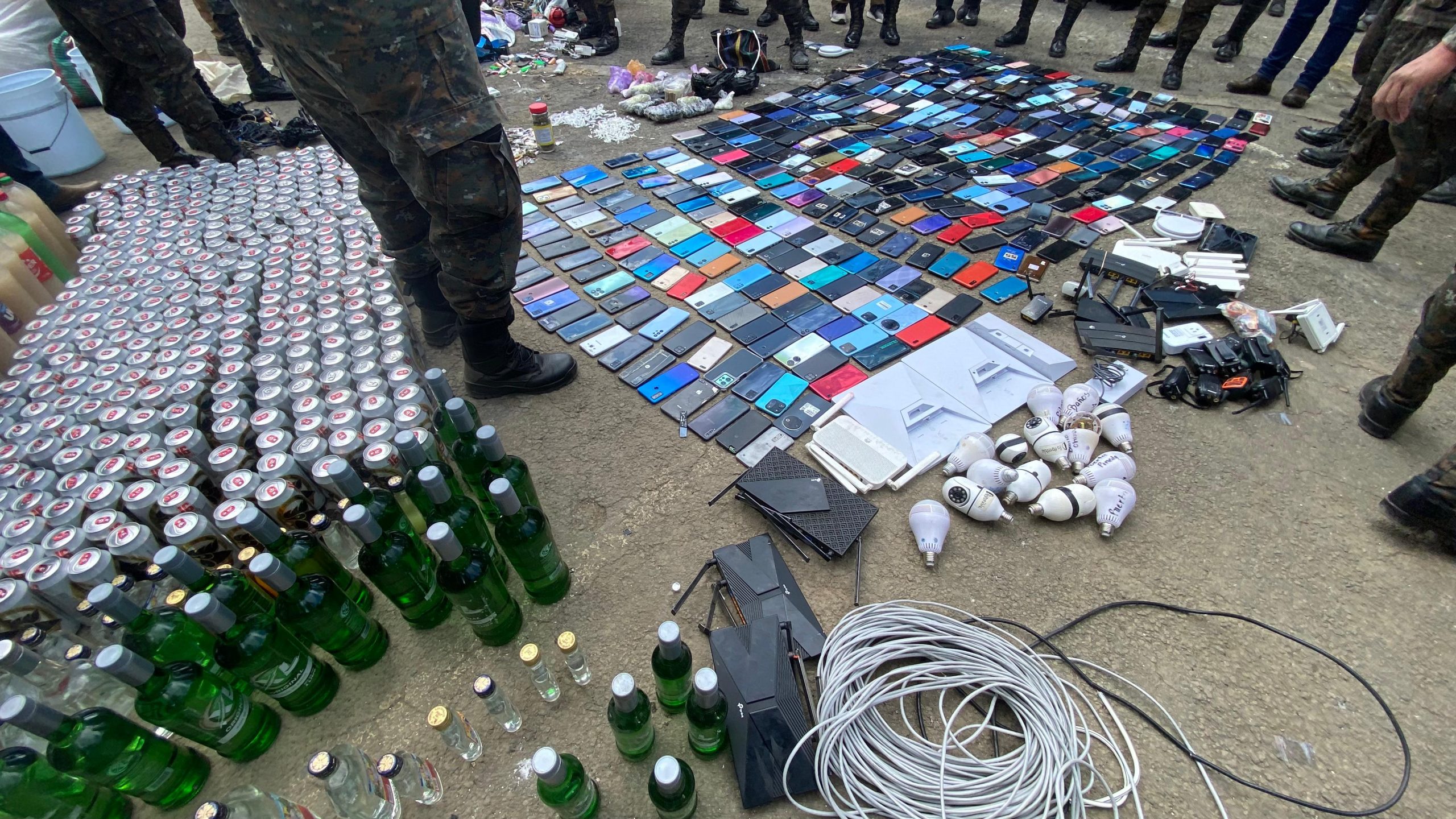 Entre lo incautado se encuentran 421 teléfonos celulares, unas 592 cervezas y 214 botellas de licor, así como 32 fardos de cigarrillos.
