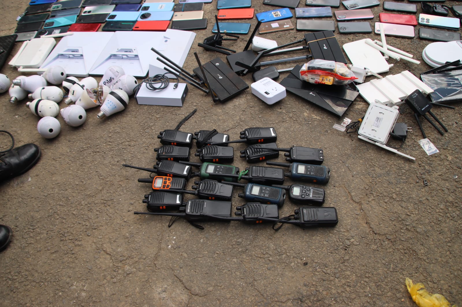 Durante el operativo también se localizaron 19 routers de internet, 24 radio comunicadores, 13 cámaras espía y tres antenas satelitales, equipos que presuntamente podrían utilizarse para mantener comunicación ilegal desde el interior del penal.