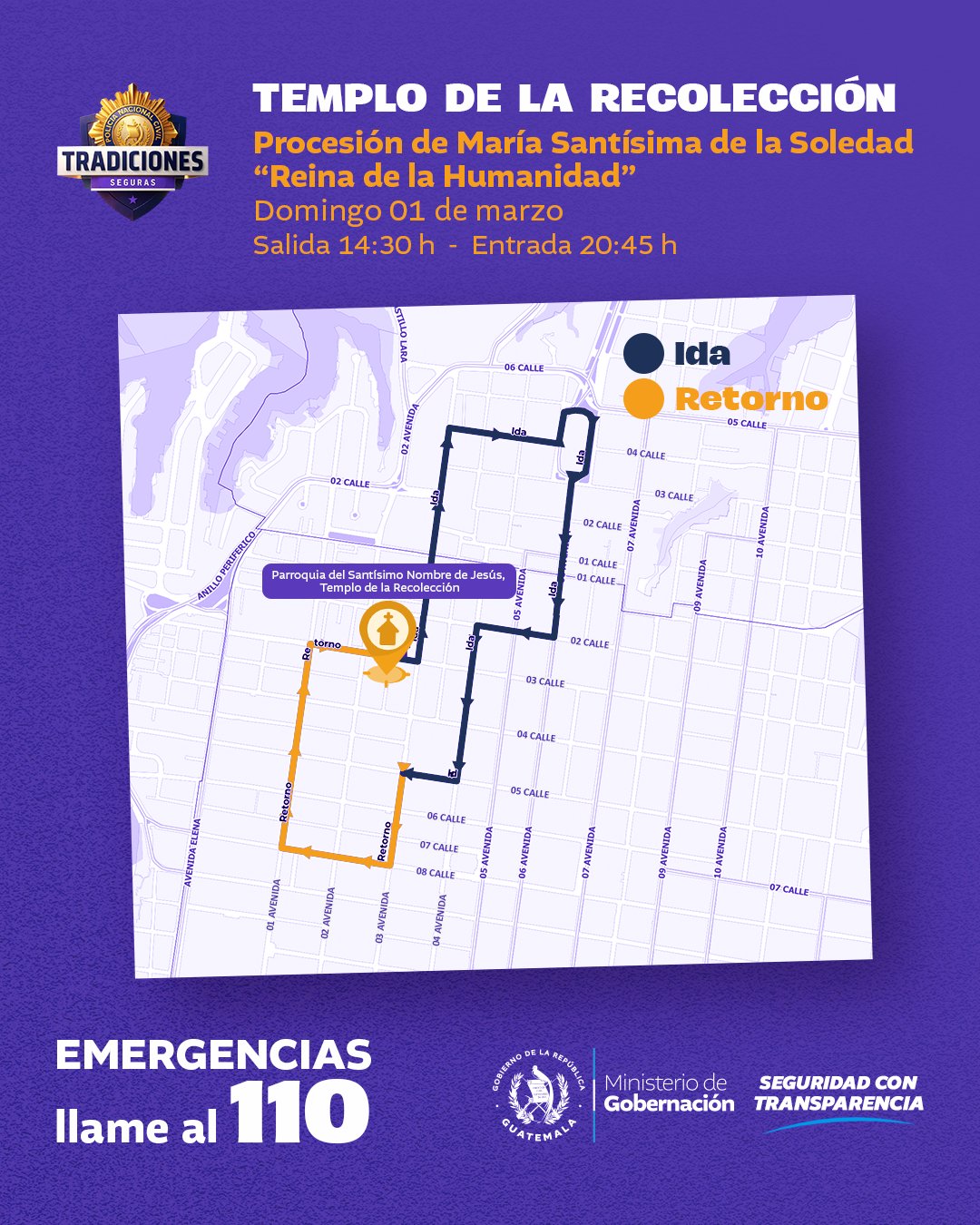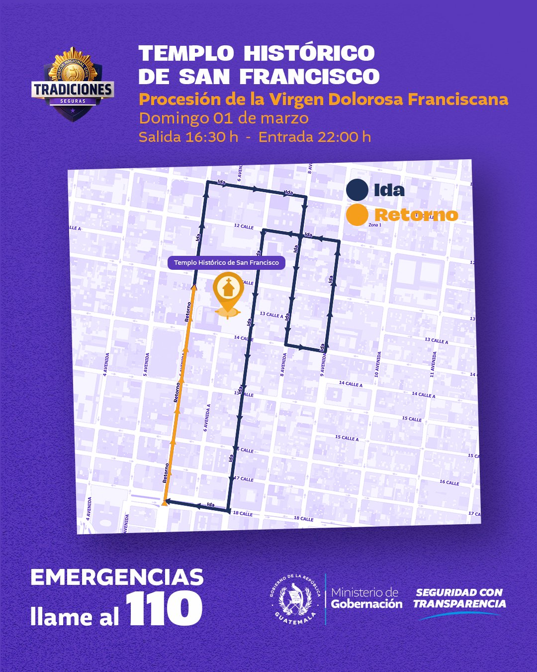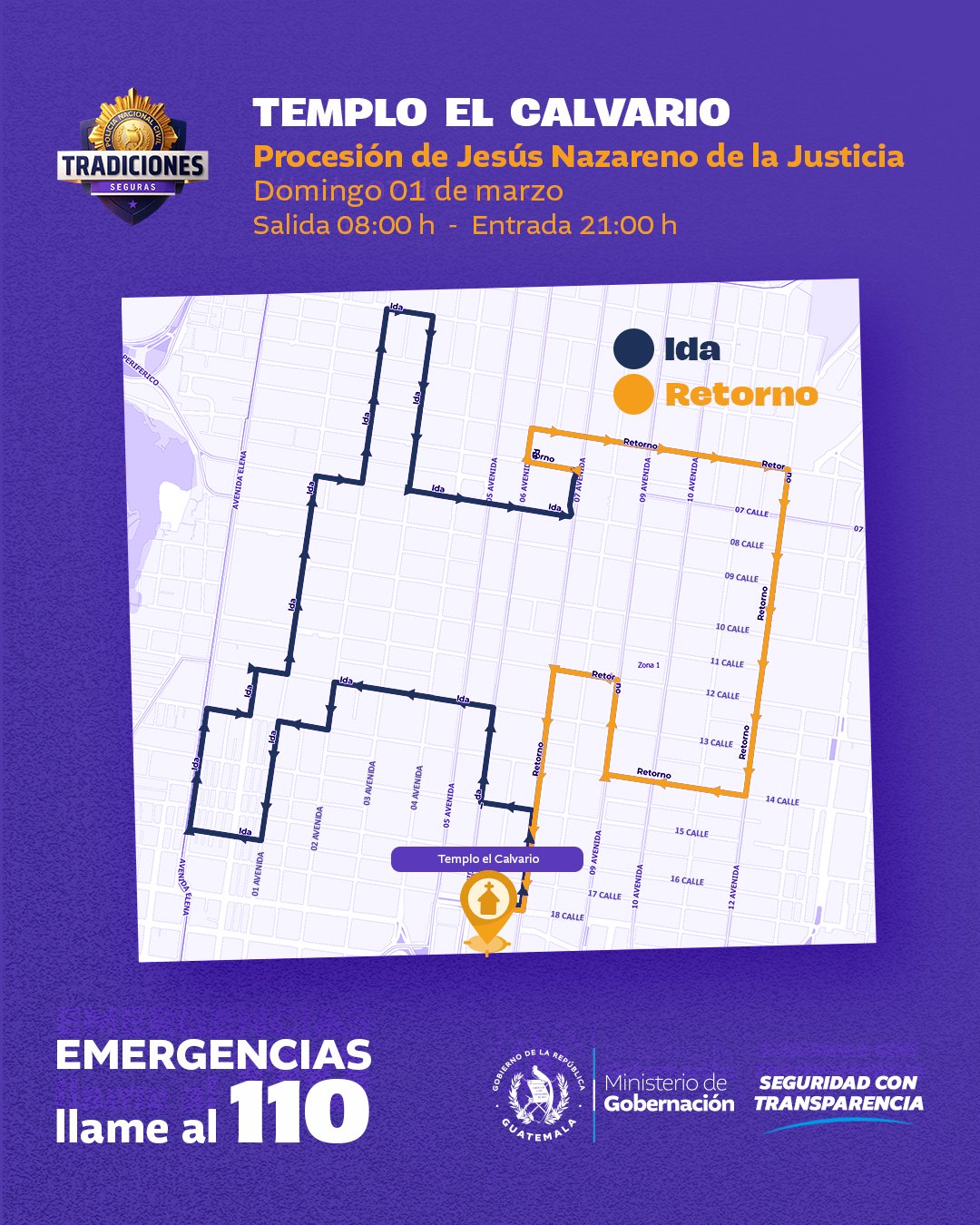 Ciudad de Guatemala, 1 mar (AGN).- El Ministerio de Gobernación, como parte del programa Tradiciones Seguras, compartió en sus redes sociales los recorridos de cortejos procesionales de este segundo domingo de Cuaresma en la zona 1 capitalina.