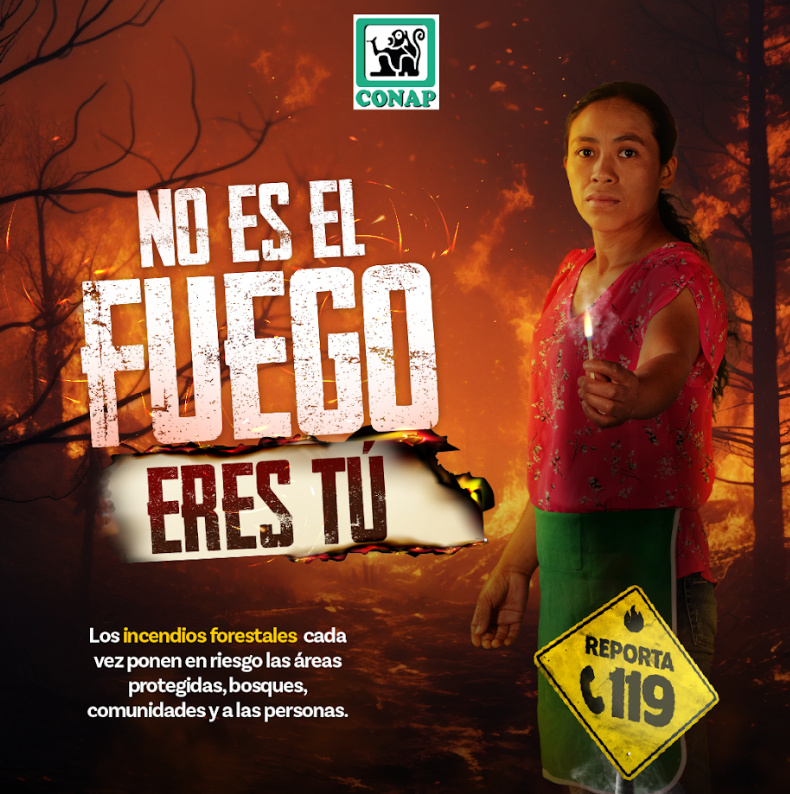Ciudad de Guatemala, 23 ene (AGN).– Bajo el lema ¡No es el fuego, eres tú!, el Consejo Nacional de Áreas Protegidas (Conap) lanzó la campaña de prevención y control de incendios forestales dentro de áreas protegidas.