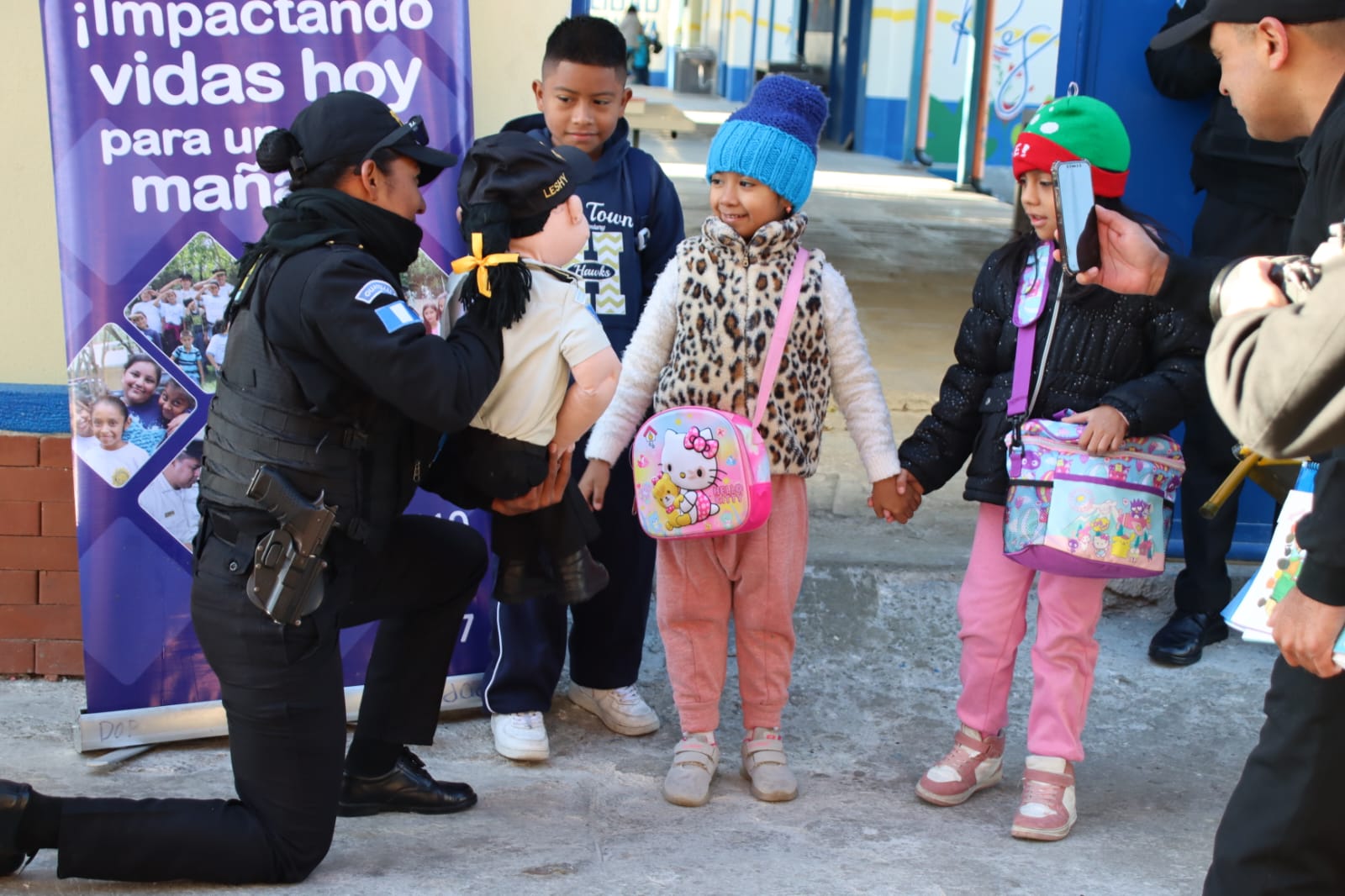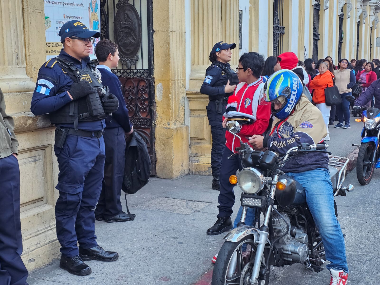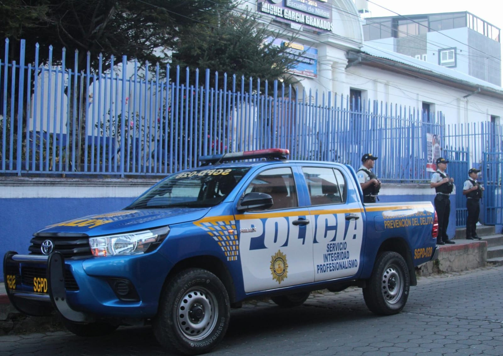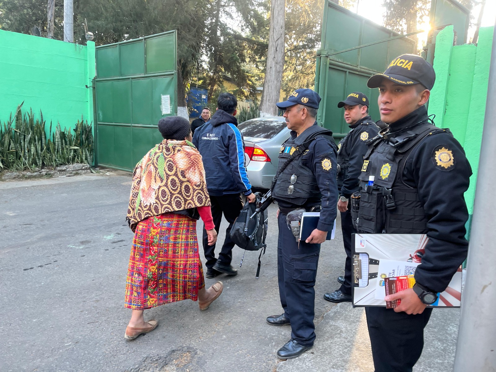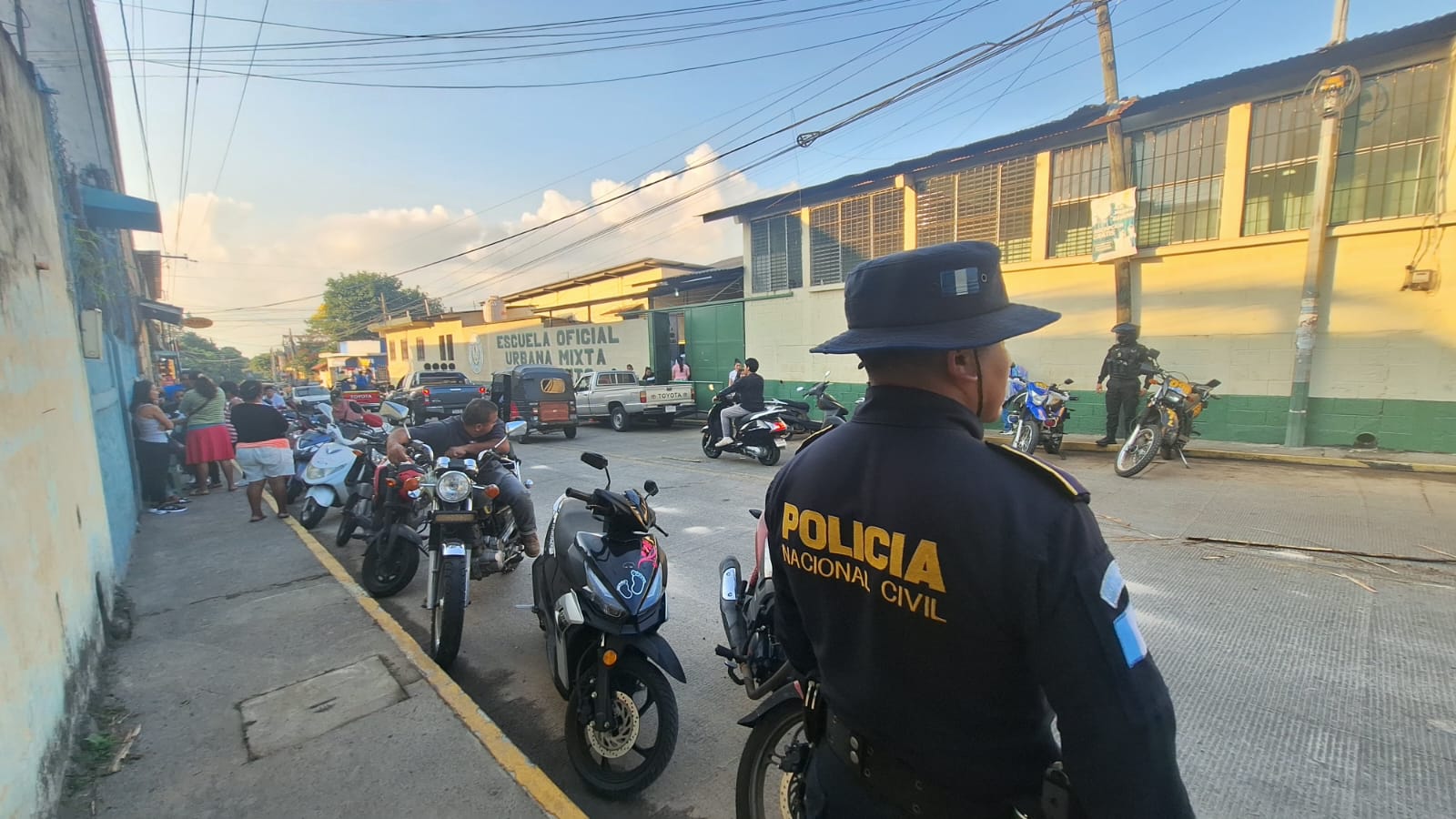 De igual mandera, en Totonicapán, agentes de la comisaría departamental, en coordinación con la Subdirección General de Prevención del Delito, brindan seguridad en cumplimiento del Plan Escuelas Seguras.
