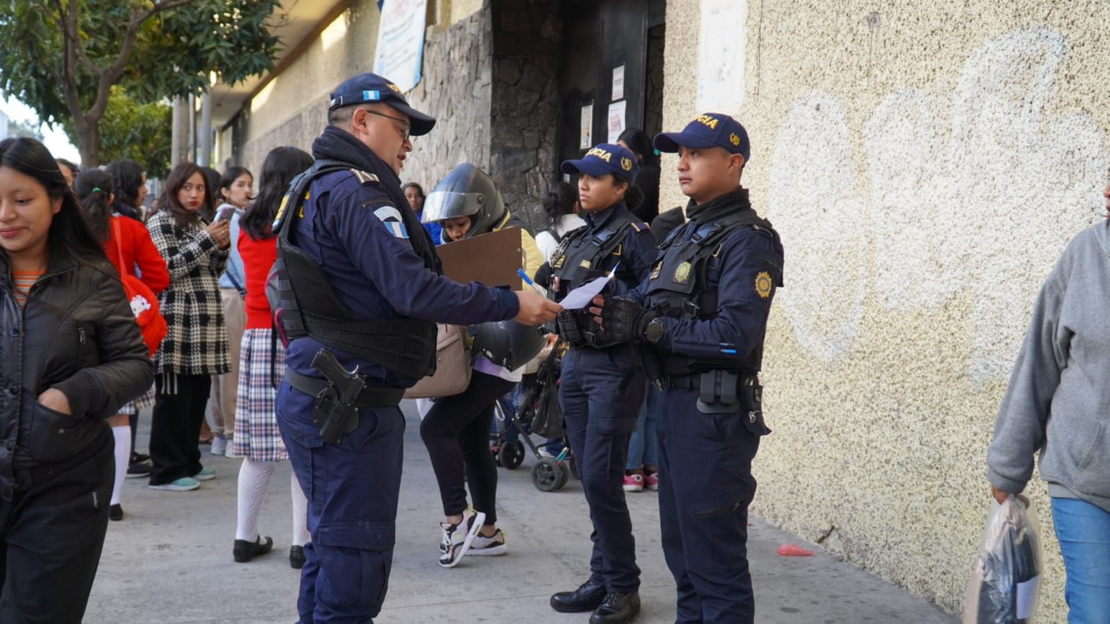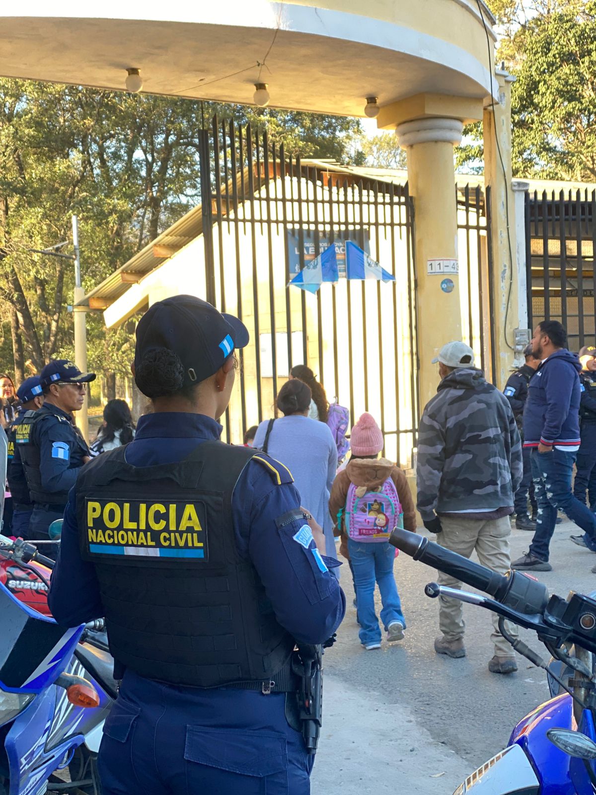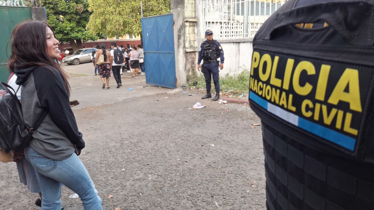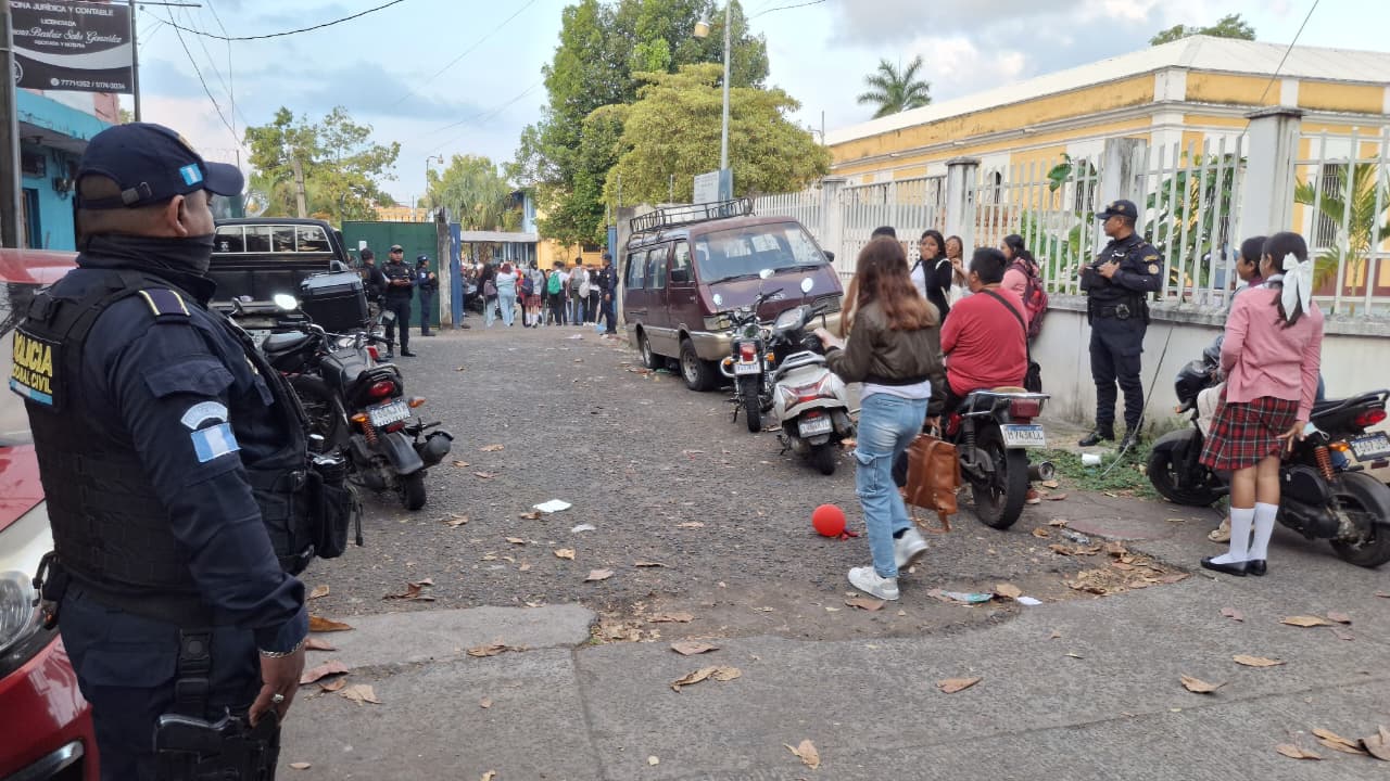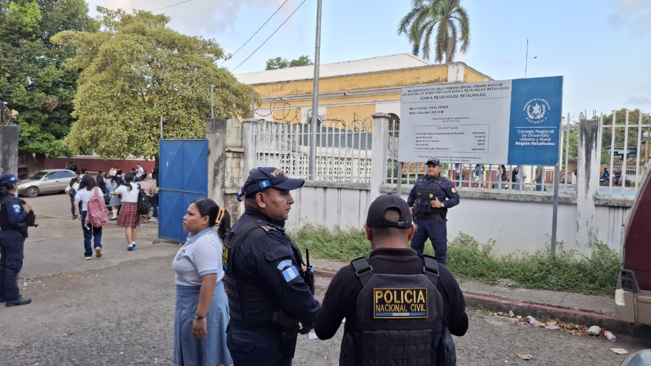 La PNC informó que el plan se ejecuta de manera simultánea en distintos puntos del país. En Retalhuleu, agentes hicieron un despliegue policial en centros educativos para garantizar la seguridad de estudiantes y personal docente desde el inicio de clases.