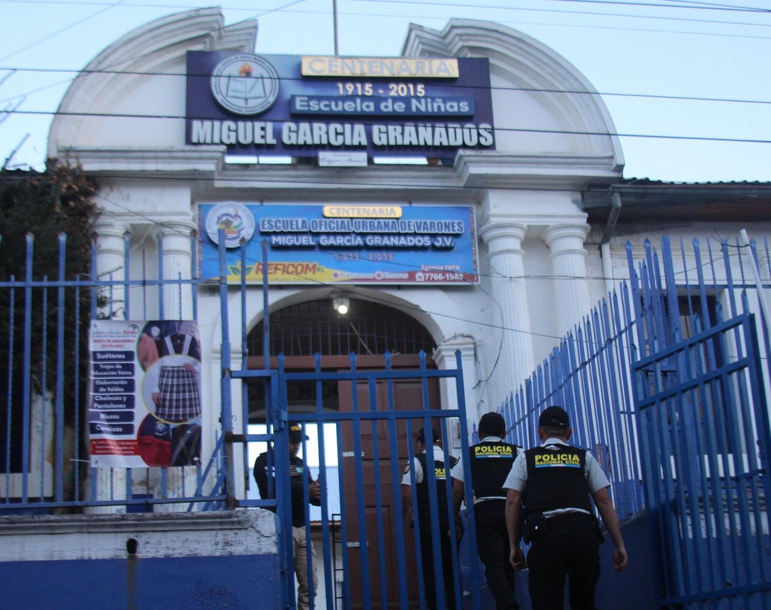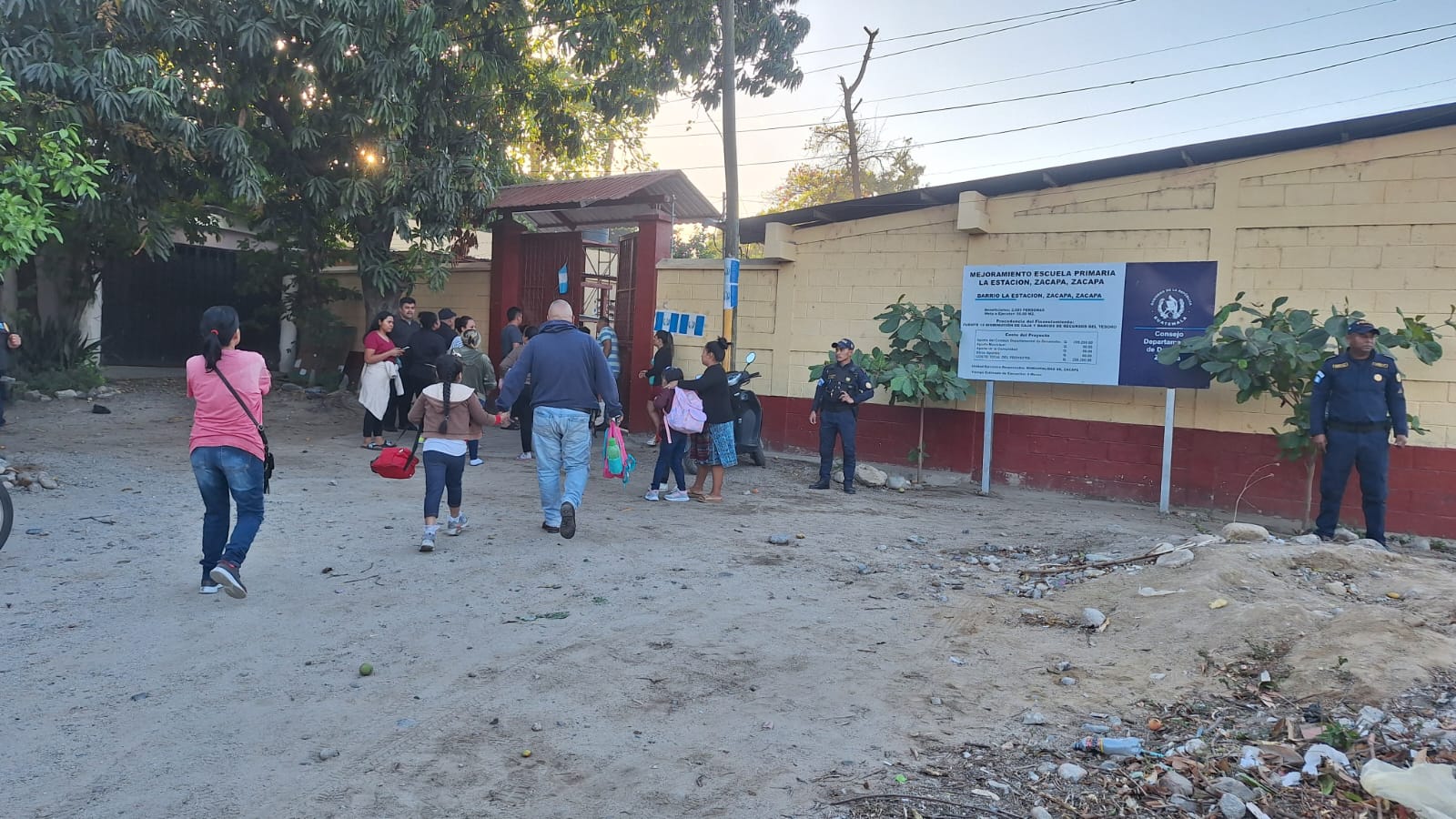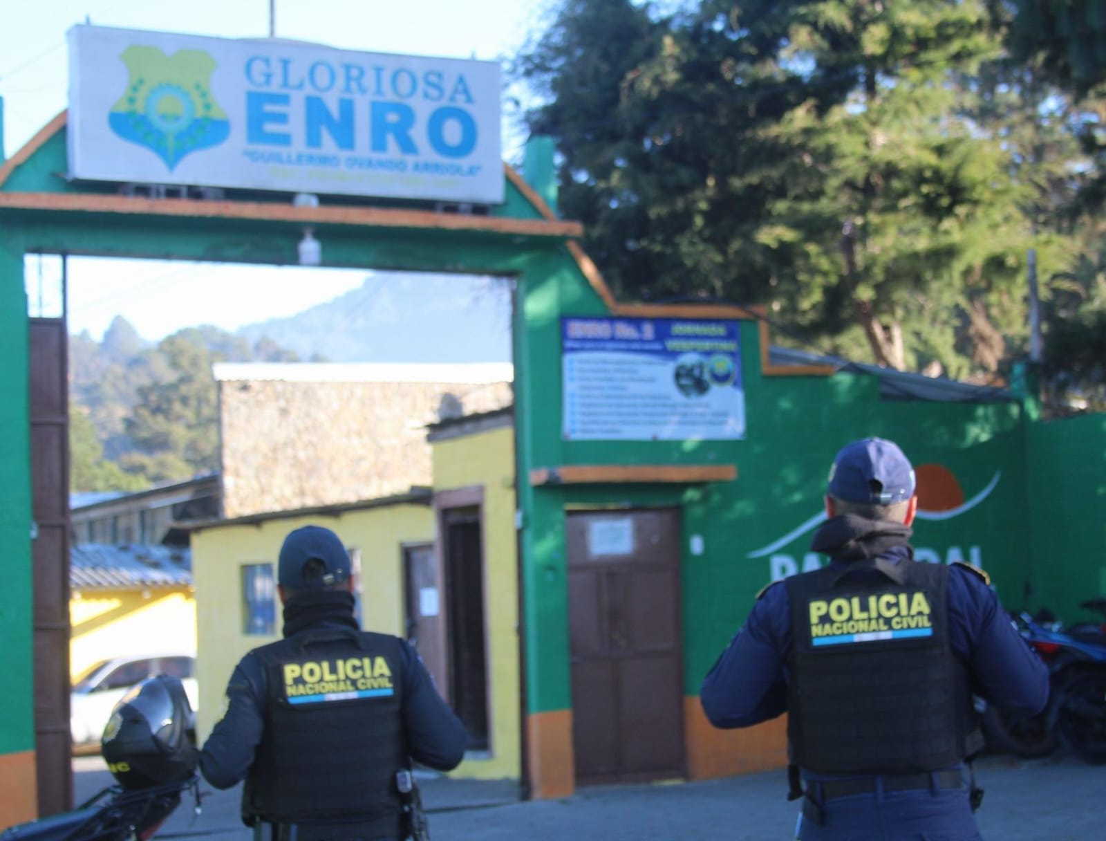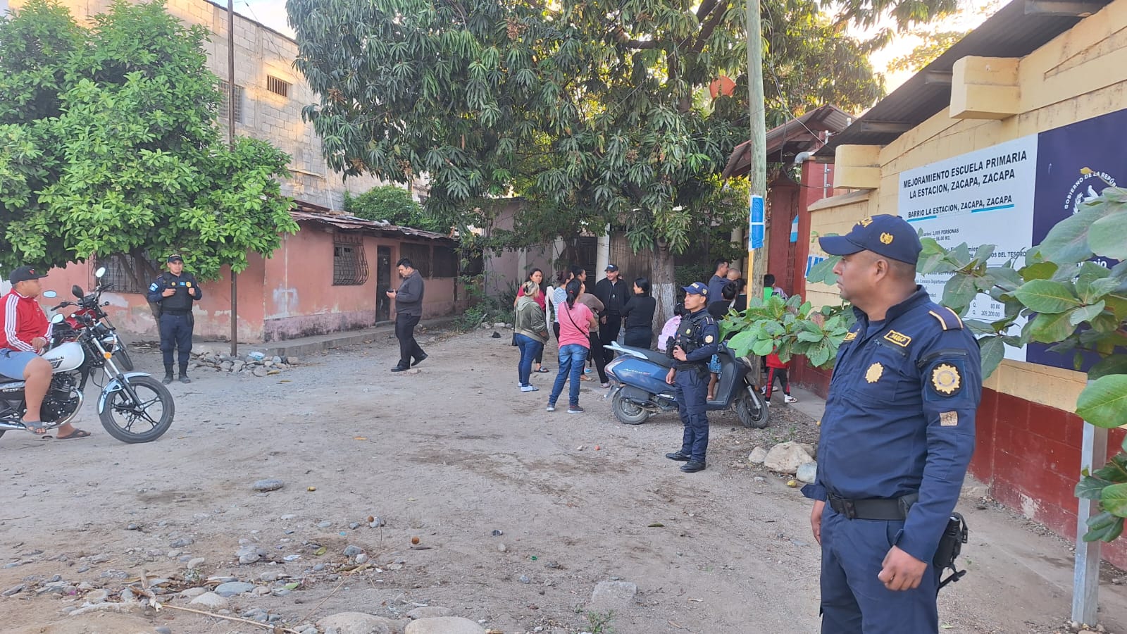 En Zacapa, elementos de la comisaría departamental mantienen seguridad perimetral en los establecimientos educativos, con el fin de prevenir hechos delictivos y resguardar a los estudiantes durante la jornada escolar.