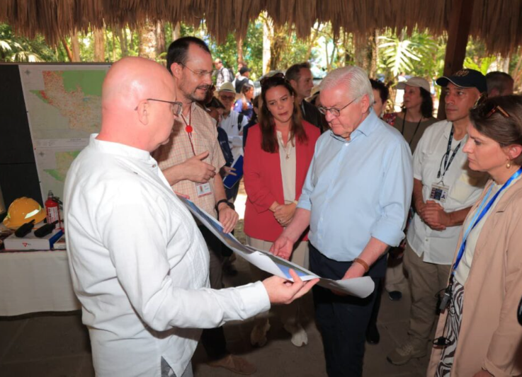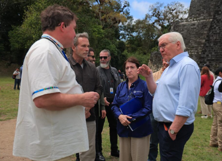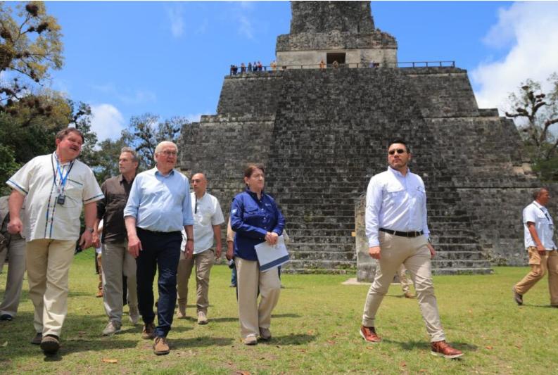 Durante su visita al parque nacional Tikal, el presidente Steinmeier también conoció de primera mano los proyectos de cooperación alemana que se desarrollan en Petén, enfocados en la protección de la selva maya, la gestión sostenible y la producción sustentable.