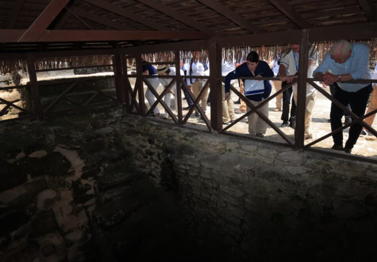 La ministra Grazioso guio al mandatario alemán por algunos de los espacios más emblemáticos del sitio arqueológico, donde compartió detalles sobre la historia, el valor cultural y la importancia de la civilización maya.